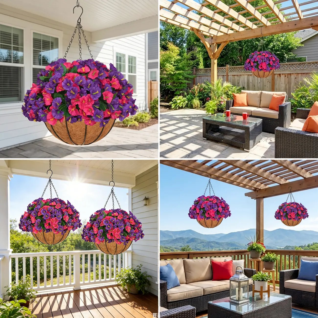 ✨ Perfect for Spring and Summer: These Artificial hanging plants and flower baskets are ideal for enhancing your outdoor decor. The realistic silk morning glory flowers add a touch of nature without the maintenance. 🌸